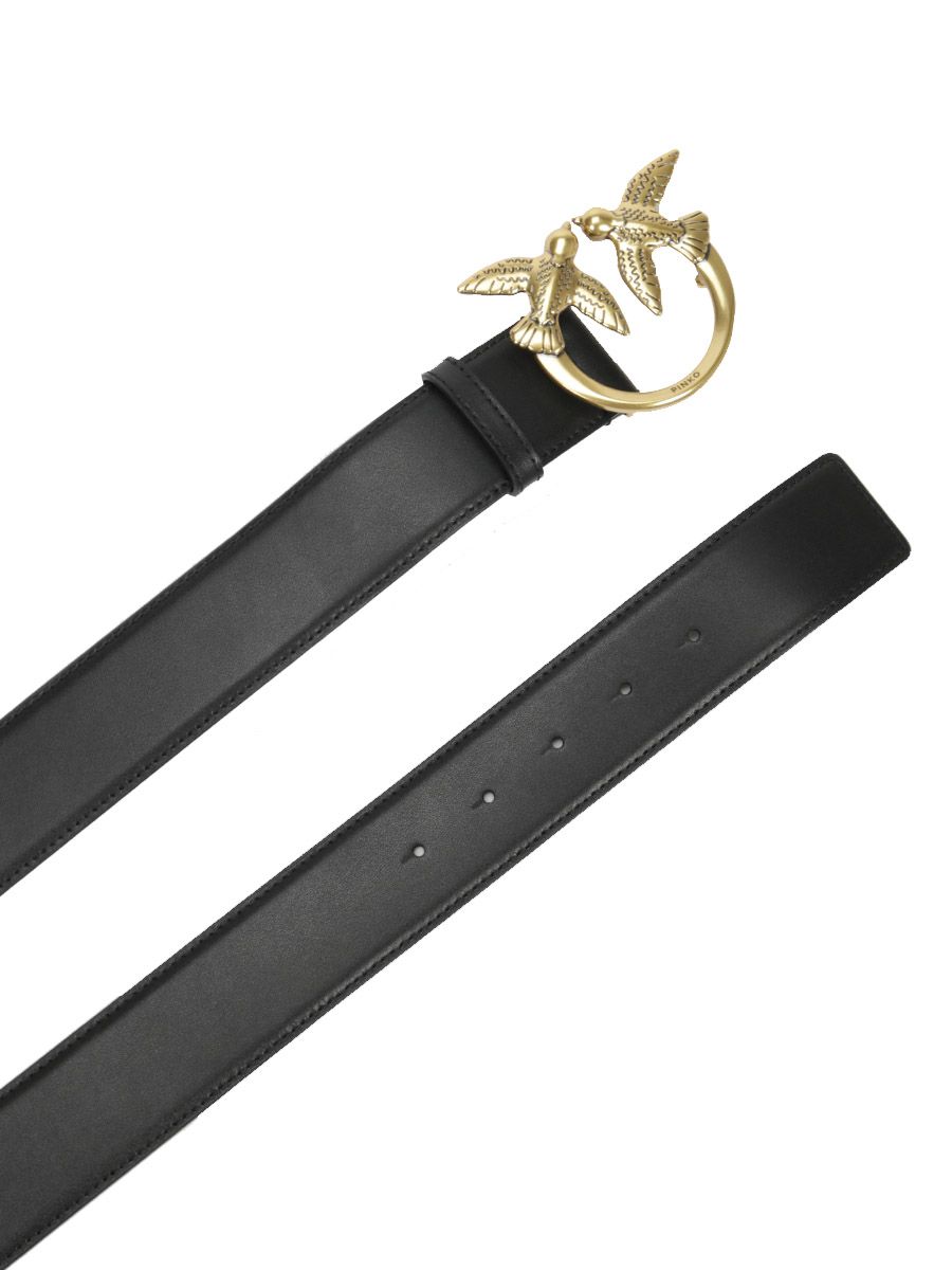 Черный ремень из натуральной мелкозернистой кожи от PINKO.
