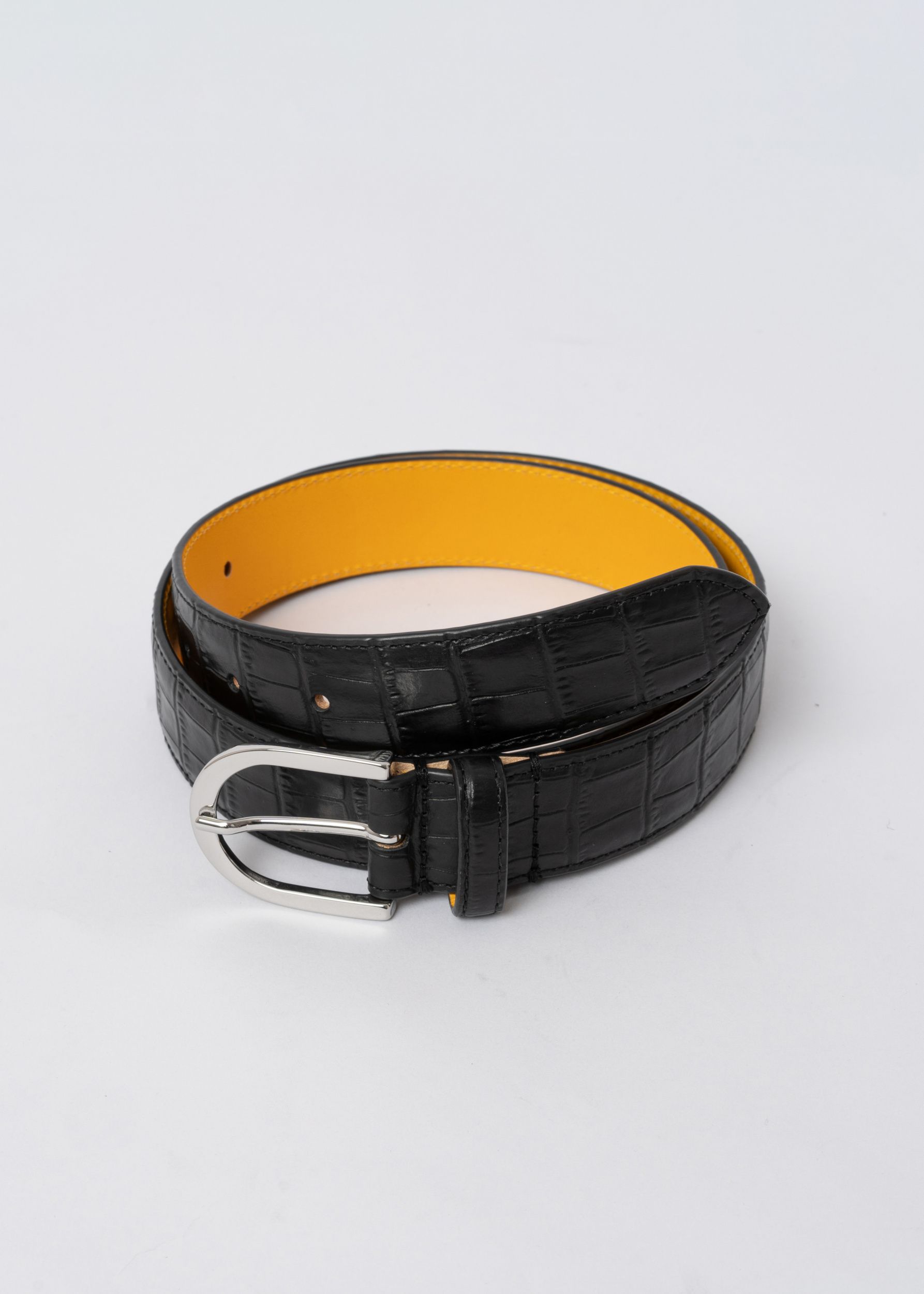 Ремень из кожи с крокодиловым тиснением в черном цвете от Doucal's