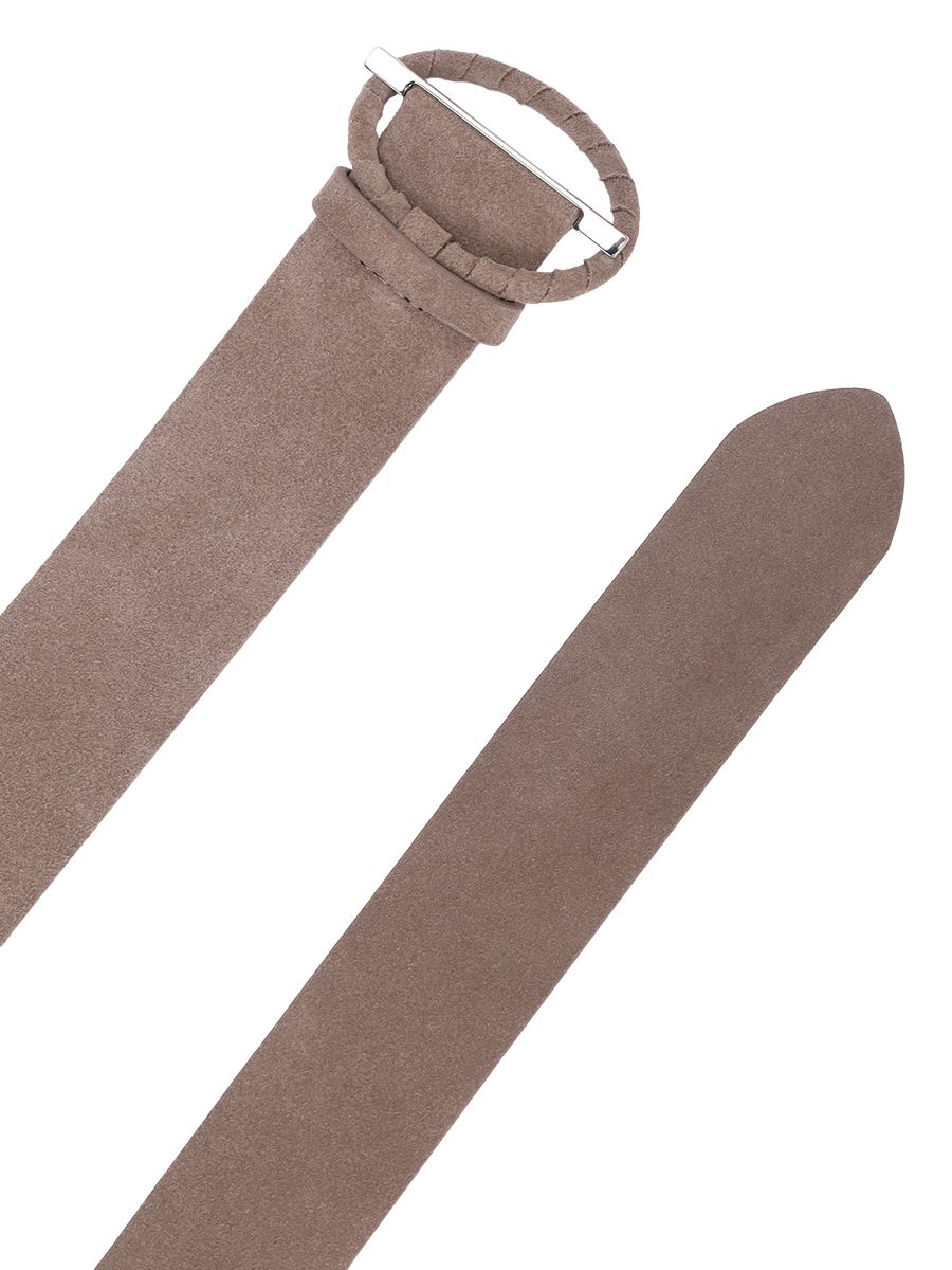 Модель с овальной пряжкой и одной замшевой шлевкой дополнит поясные изделия или подчеркнет талию в образах с объемными блузами или платьями.