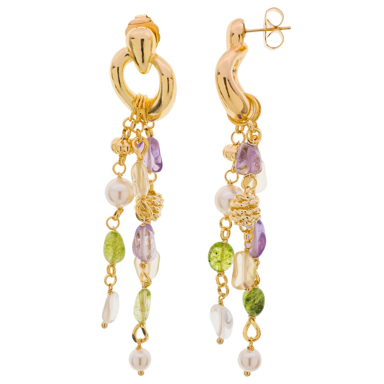 Серьги с жемчугом-майорка и ювелирным стеклом зеленого, сиреневого и ванильного оттенков. Застежка - гвоздик. Цвет золотой.