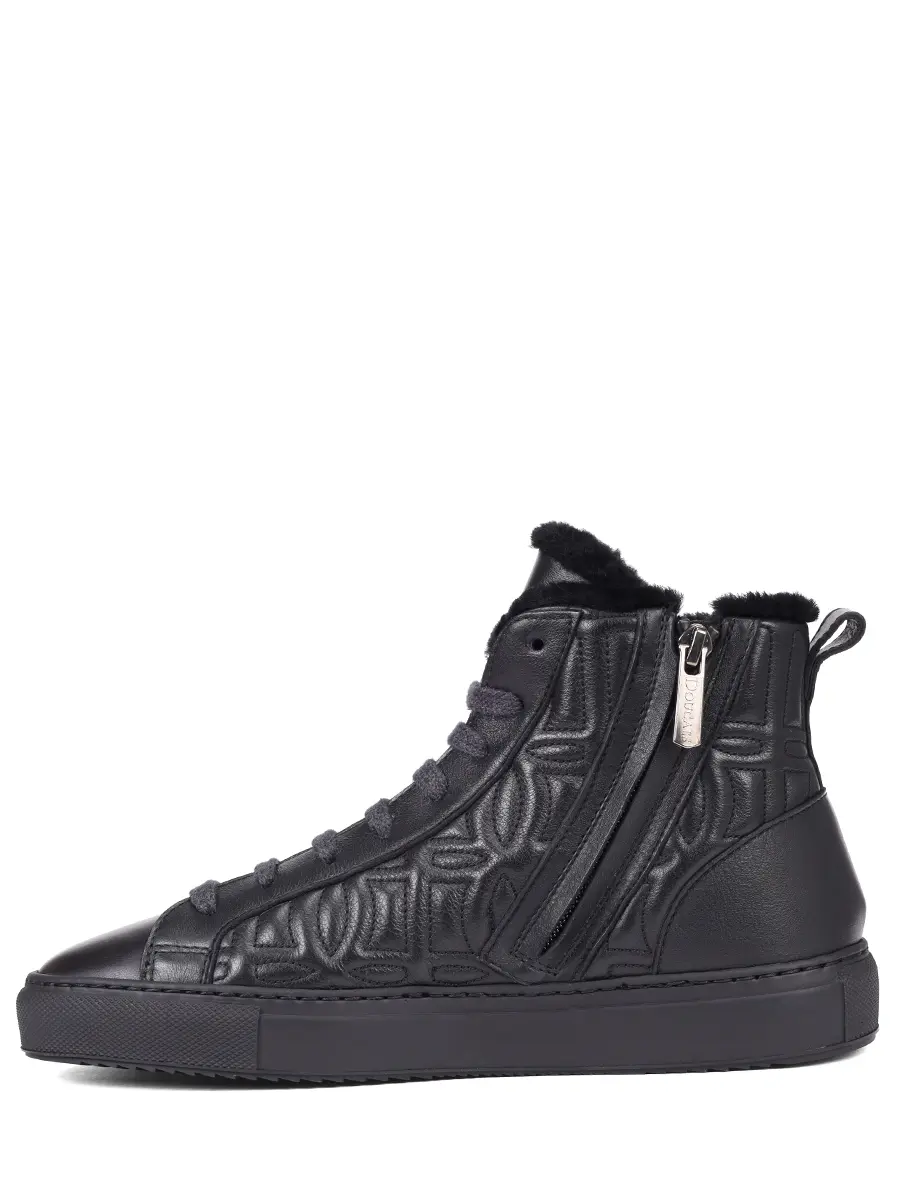 Высокие черные кеды из кожи со стеганым узором от DOUCAL'S.