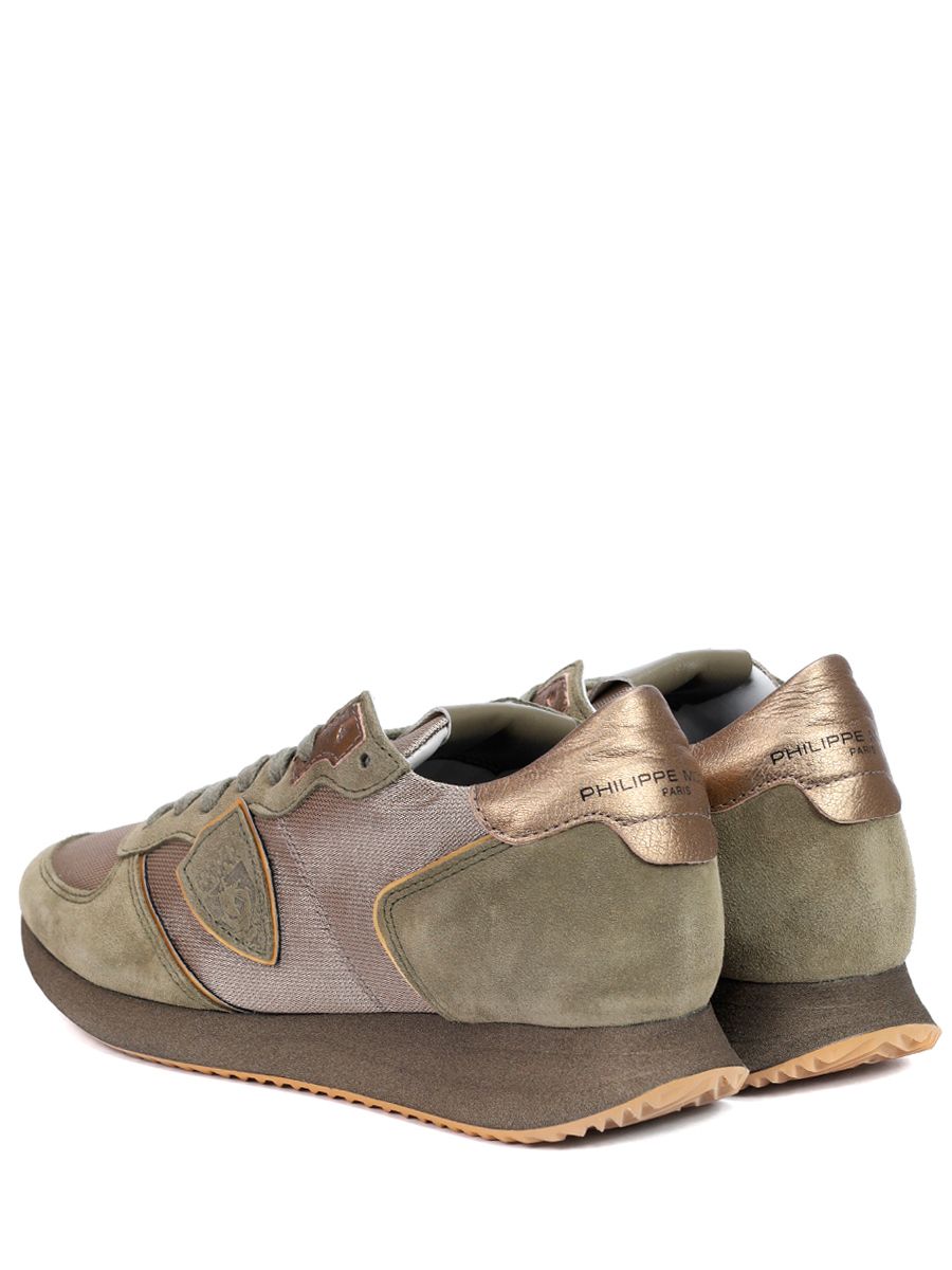 Зеленые кроссовки из текстиля и замши от PHILIPPE MODEL.