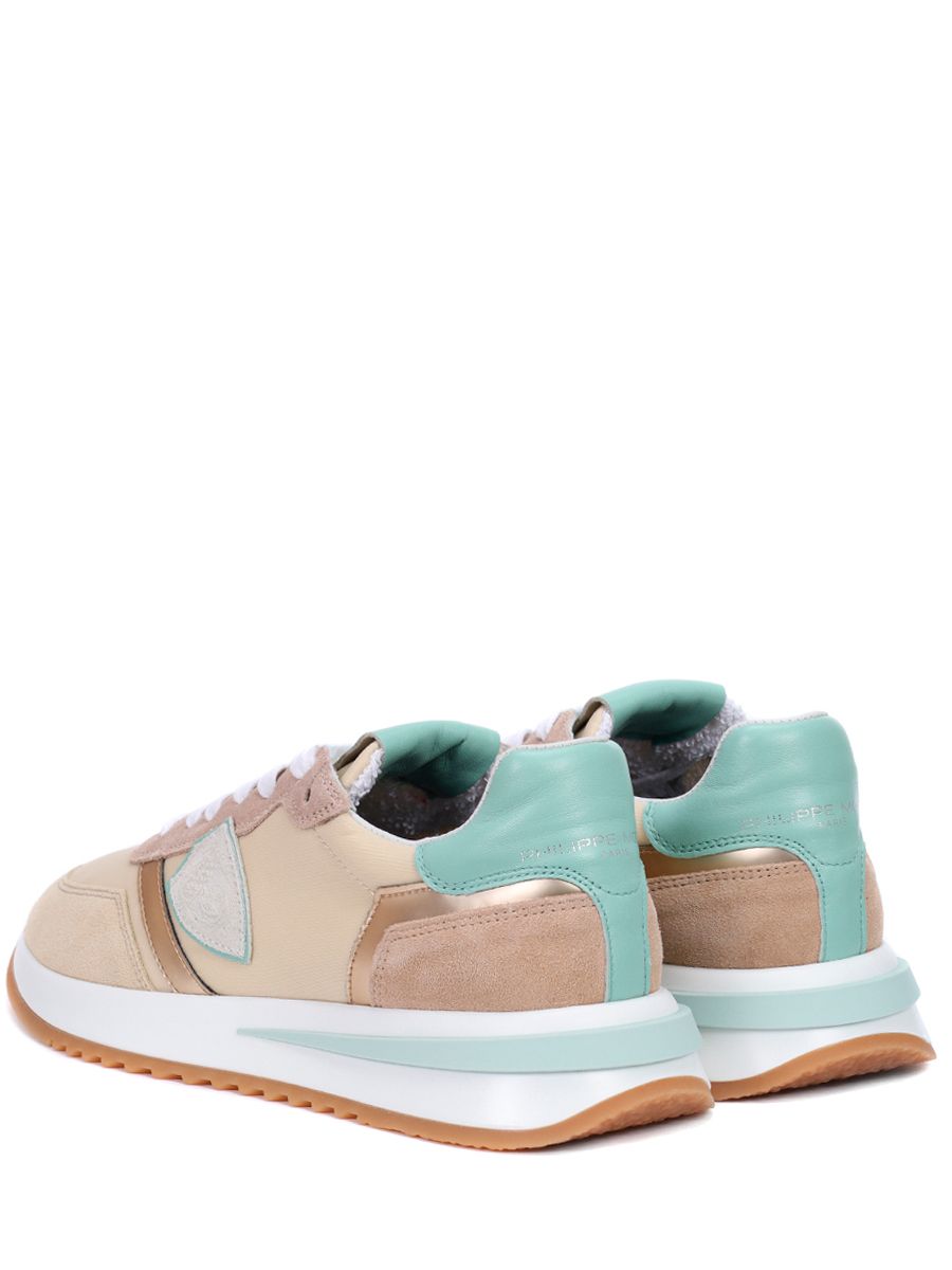 Кроссовки в стиле колор-блок из кожи и замши от PHILIPPE MODEL.