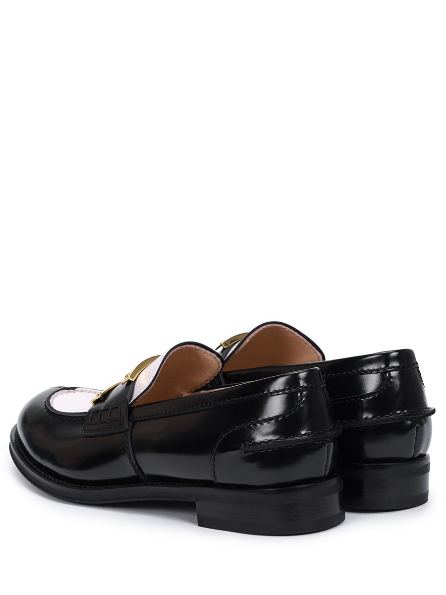 Низкий каблук, поперечный ремешок с металлическими вставками и логотипом бренда на контрастном подъеме, внутренней отделкой из натуральной кожи.