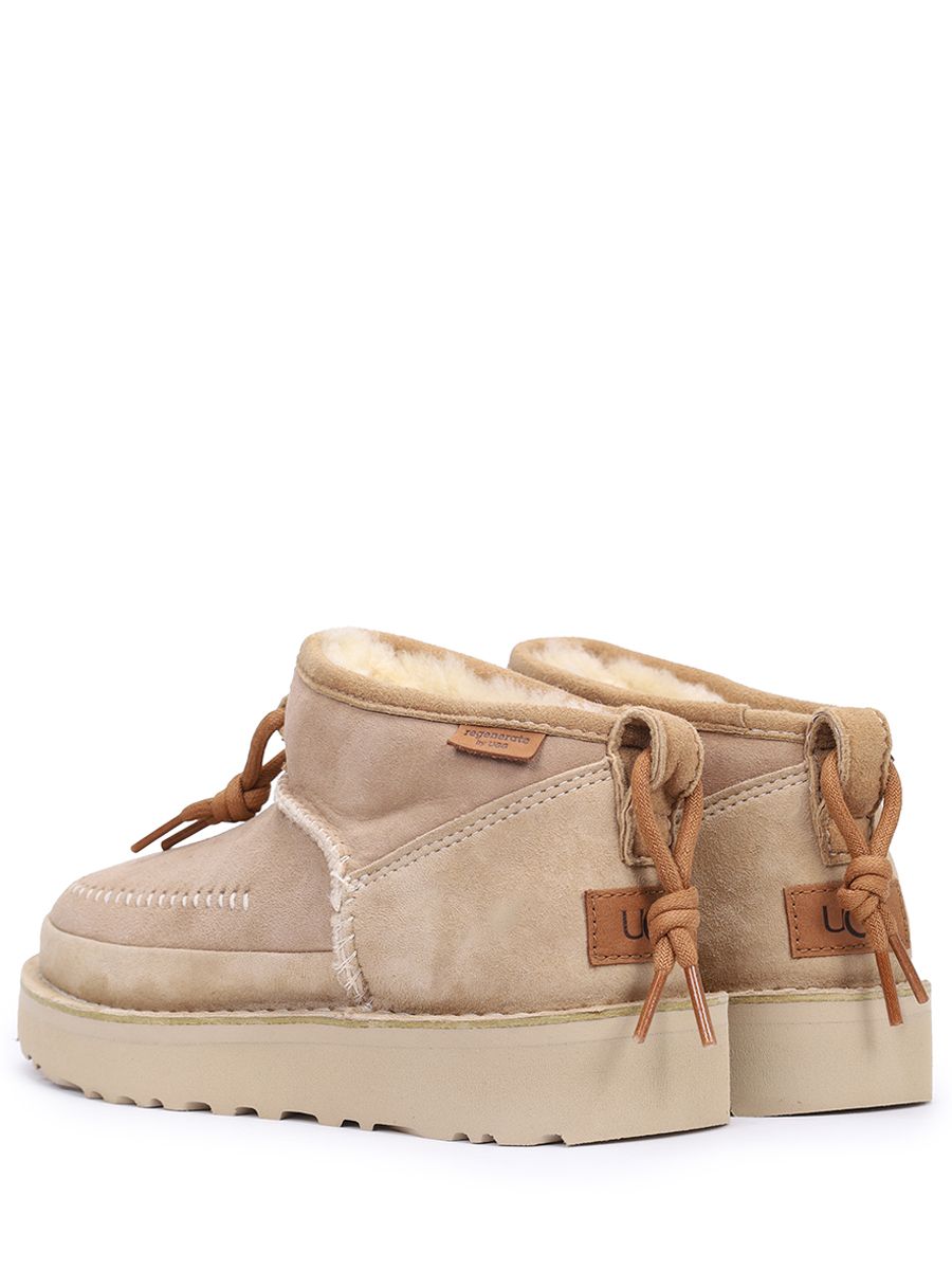 Модель на плоской устойчивой подошве с рельефным протектором, закругленным носком и внутренней меховой отделкой.