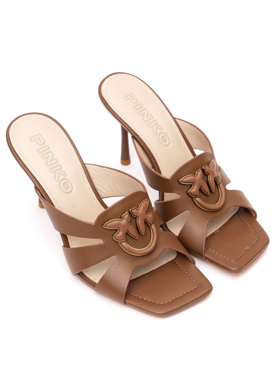 Коричневые мюли из гладкой кожи от PINKO.