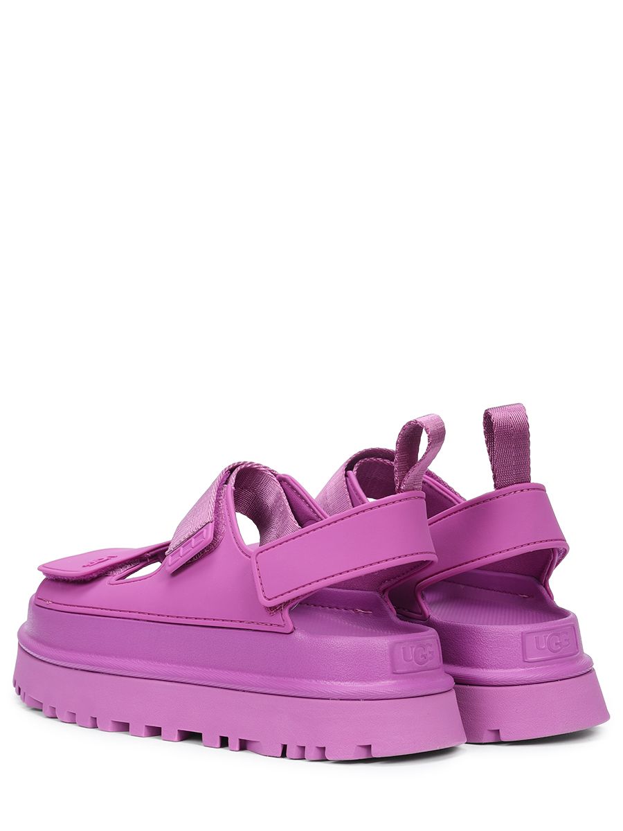 Модель на высокой устойчивой подошве с рельефным протектором, закругленным носком и застежкой на липучках.