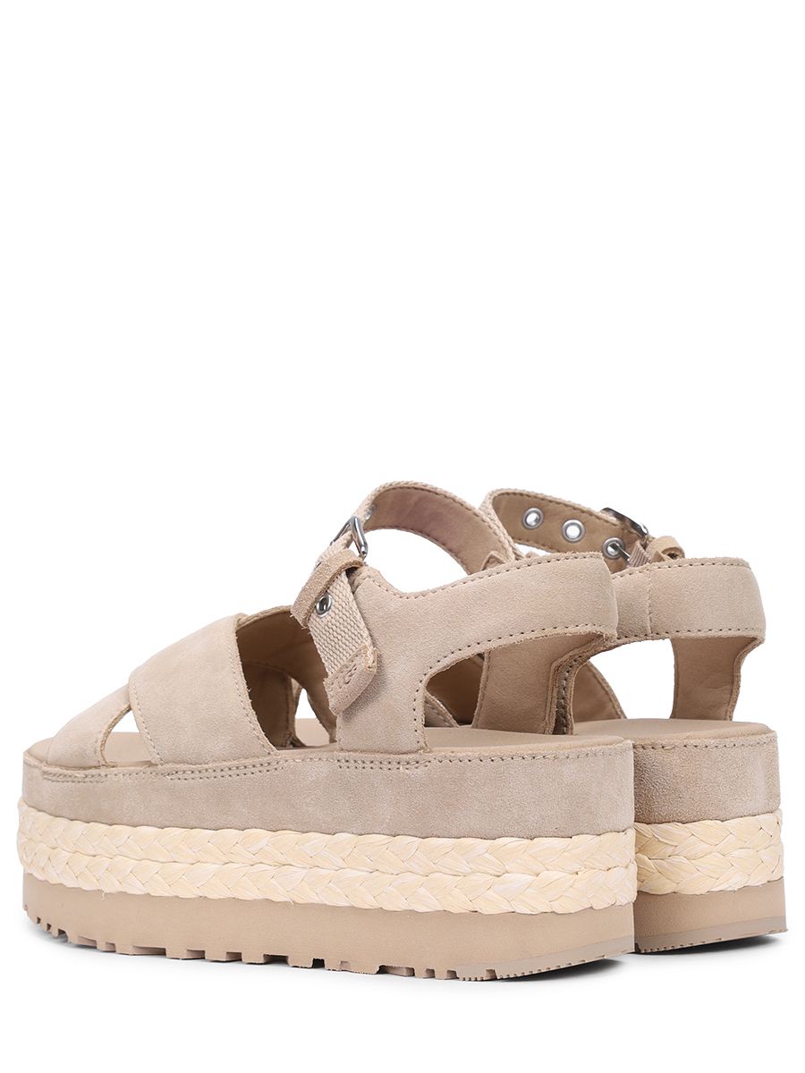 Модель на высокой устойчивой подошве с рельефным протектором, закругленным носком и застежкой на ремешках.