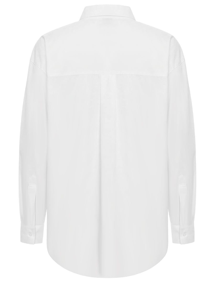 Белая рубашка из хлопка от PINKO.-Модель свободного кроя со спущенной линией плеча, длинными рукавами с манжетами, отложным воротником и супатной застежкой на пуговицы.-Рубашка будет прекрасно сочетаться практически с любыми элементами базового гардероба, будь то джинсы, брючный костюм или юбка.