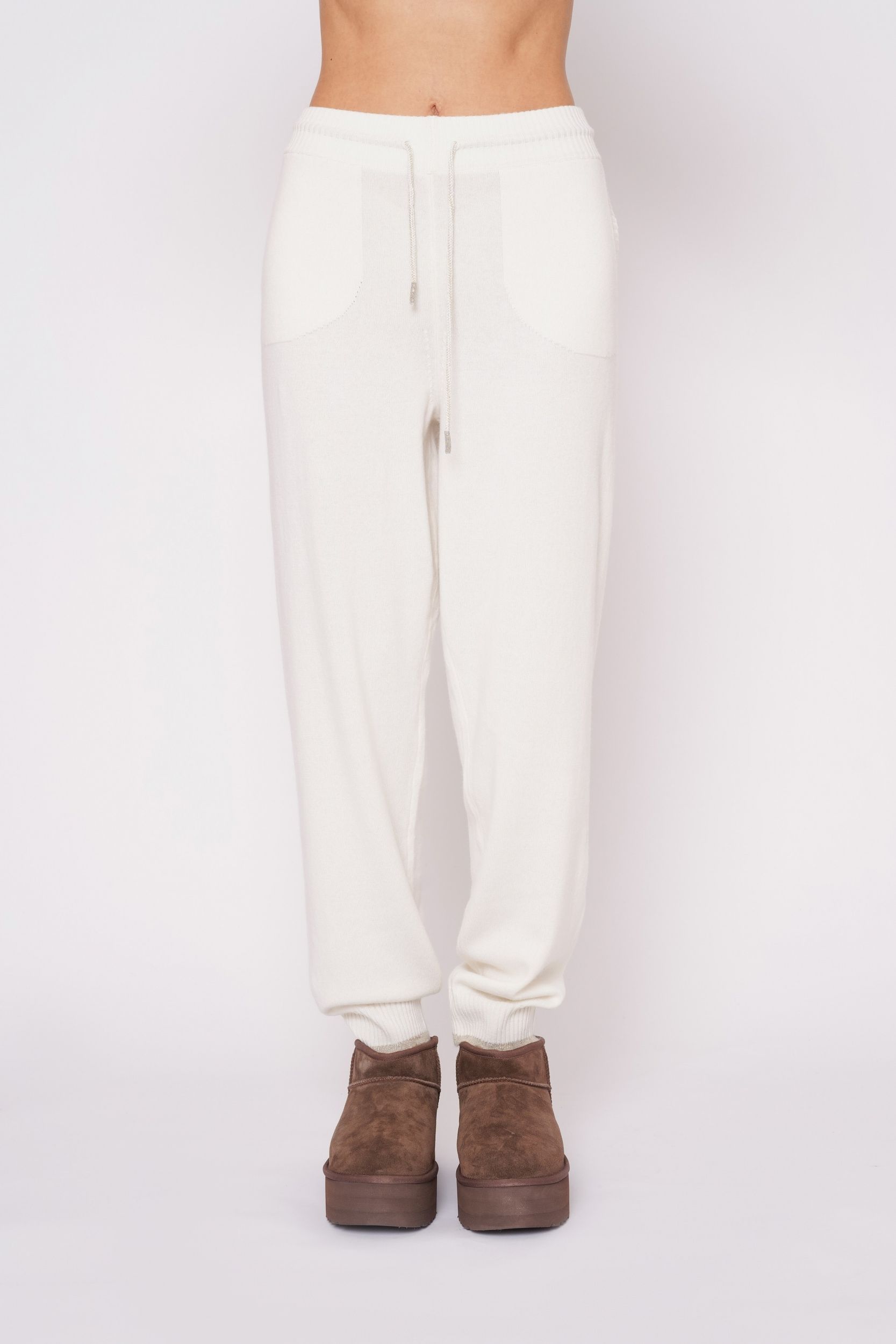 Кремовые трикотажные джоггеры из смесовой шерсти от PANICALE.