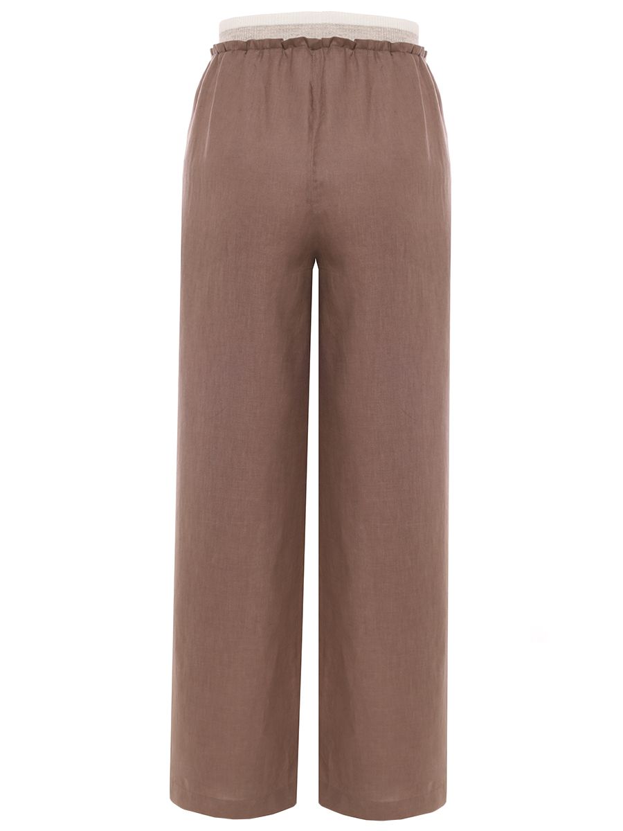 Брюки свободного кроя с высокой посадкой, трикотажным поясом и защипами.