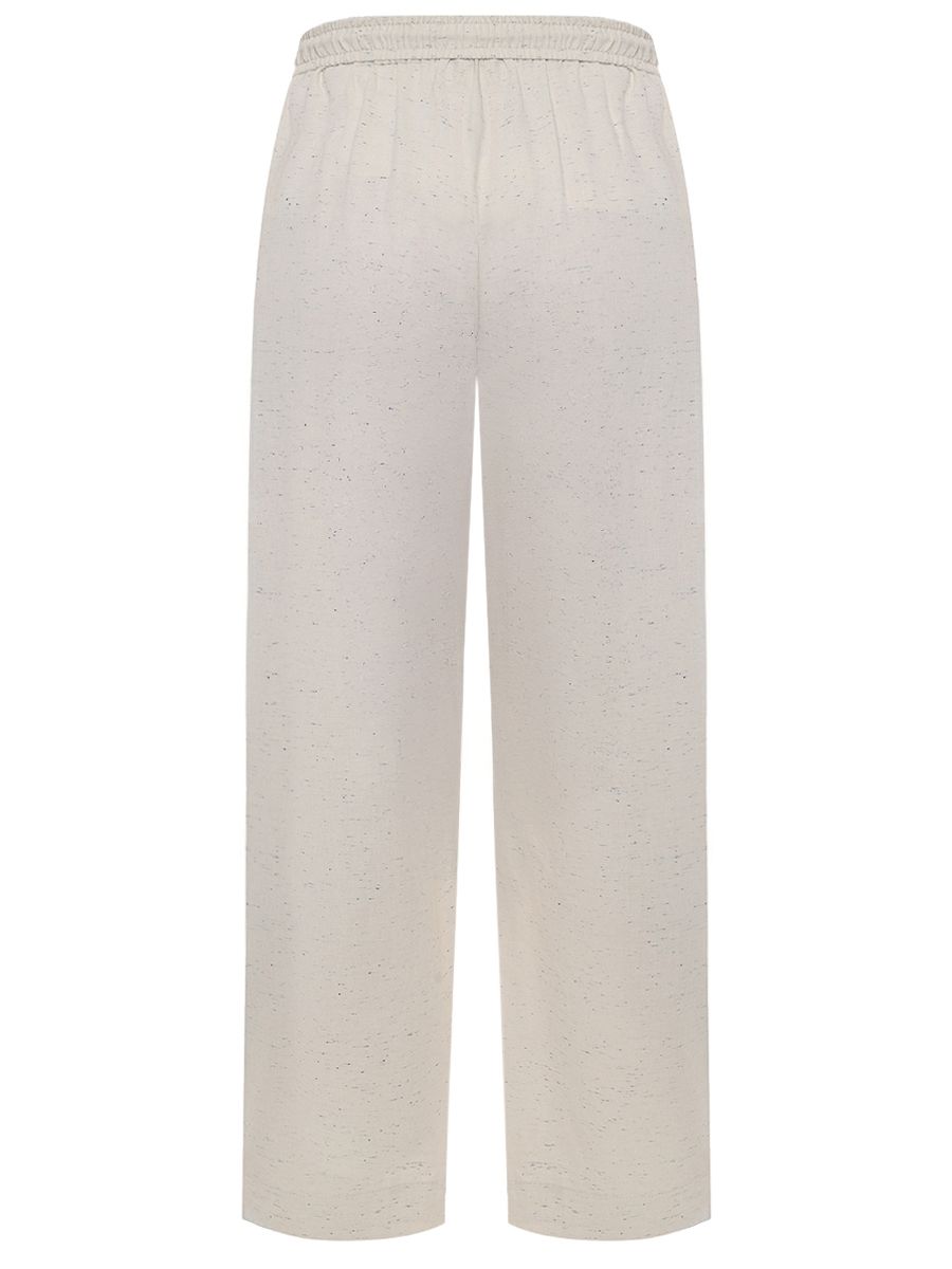 Модель свободного кроя с высокой посадкой, эластичным поясом на кулиске, накладными карманами с клапанами по бокам.