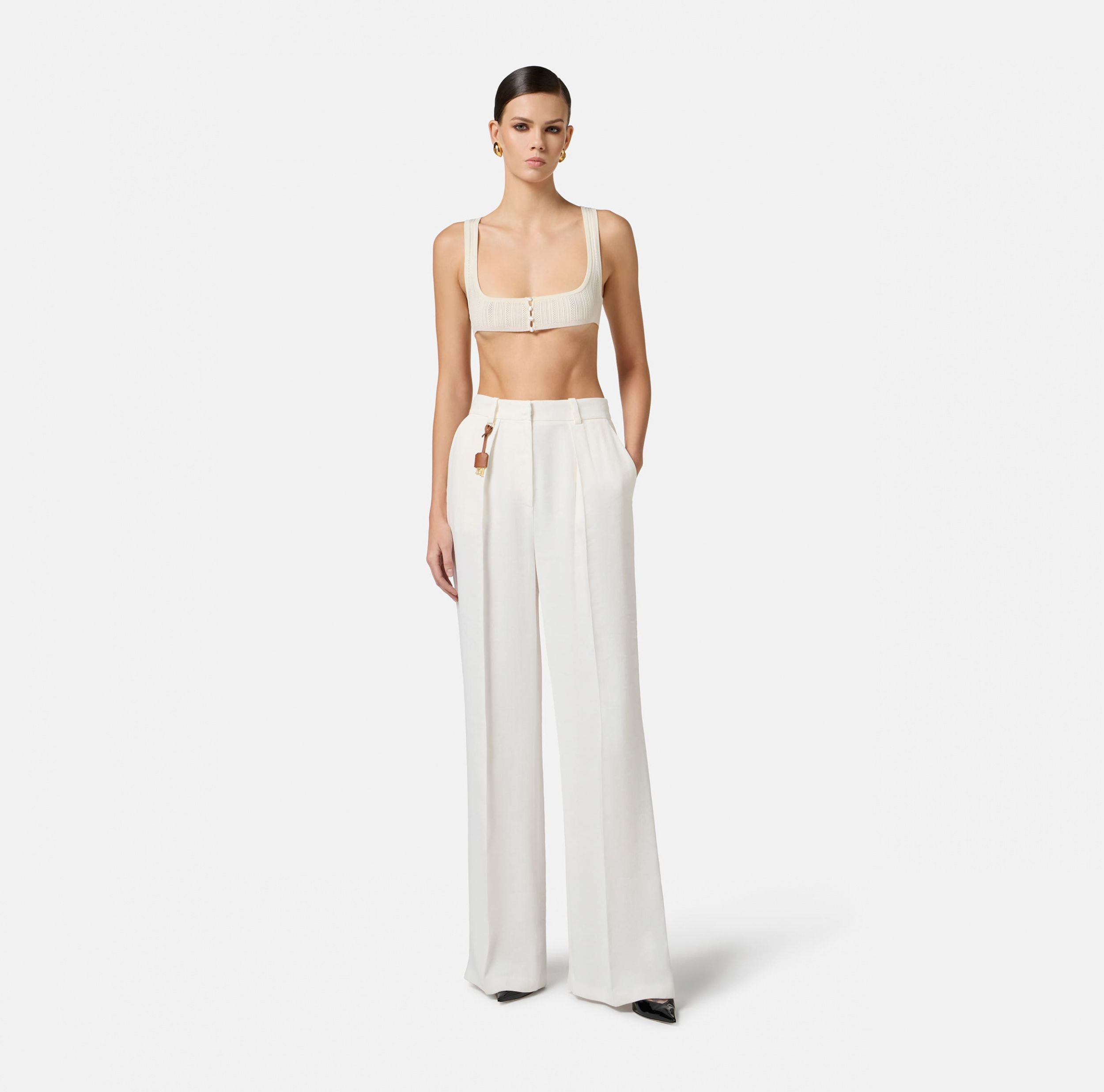 Брюки стандартной посадки из смесового льняного габардина.