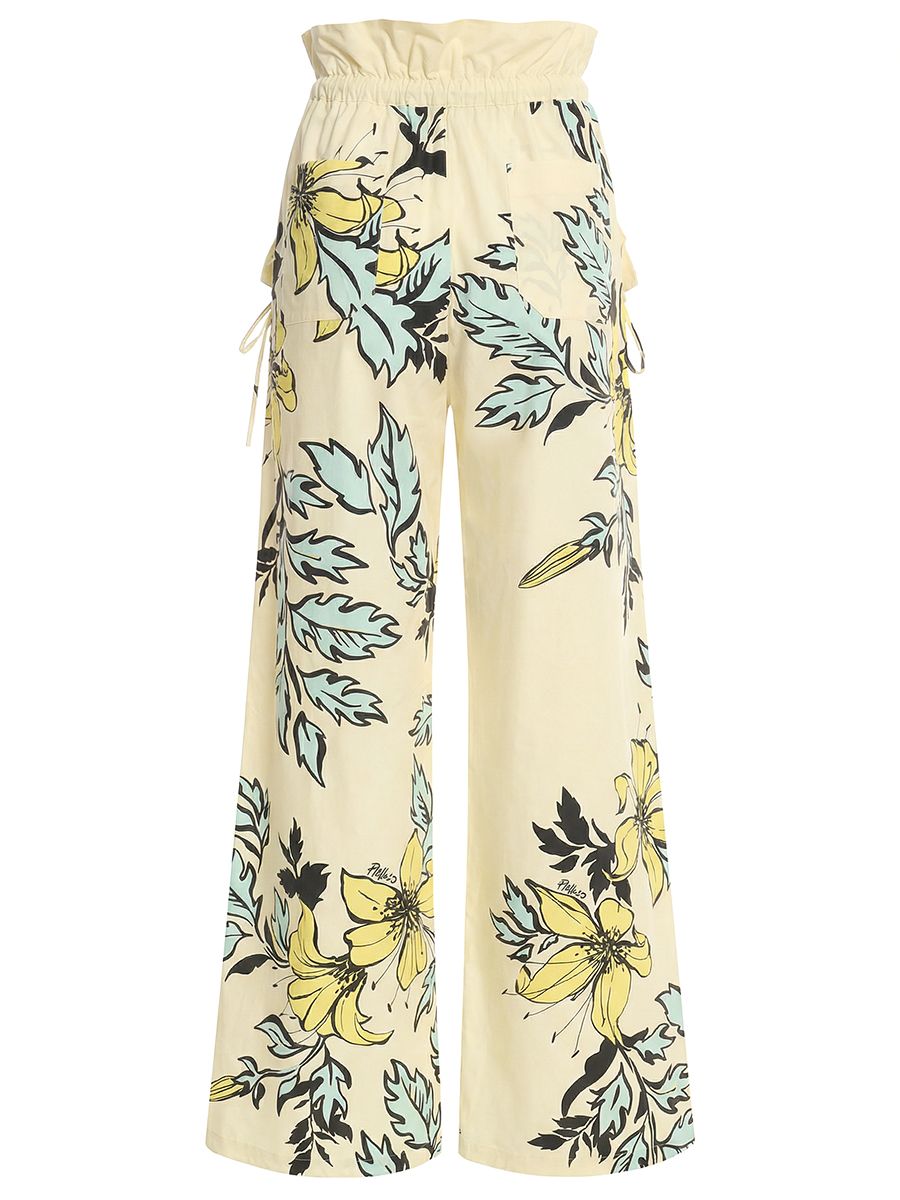 Желтые брюки с цветочным принтом из хлопка от PINKO.