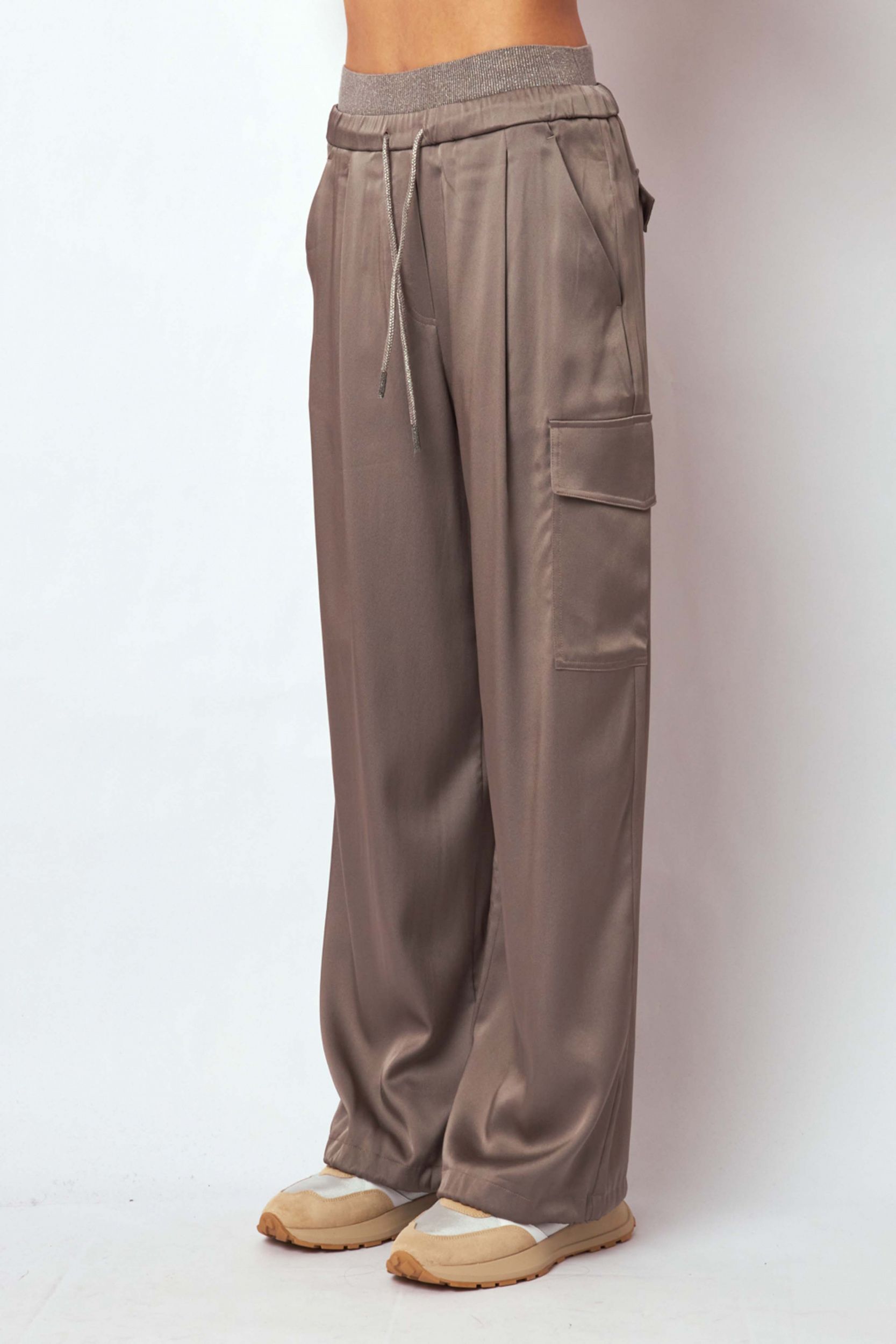 Бежевые брюки-карго из шелковистого сатина от PANICALE.