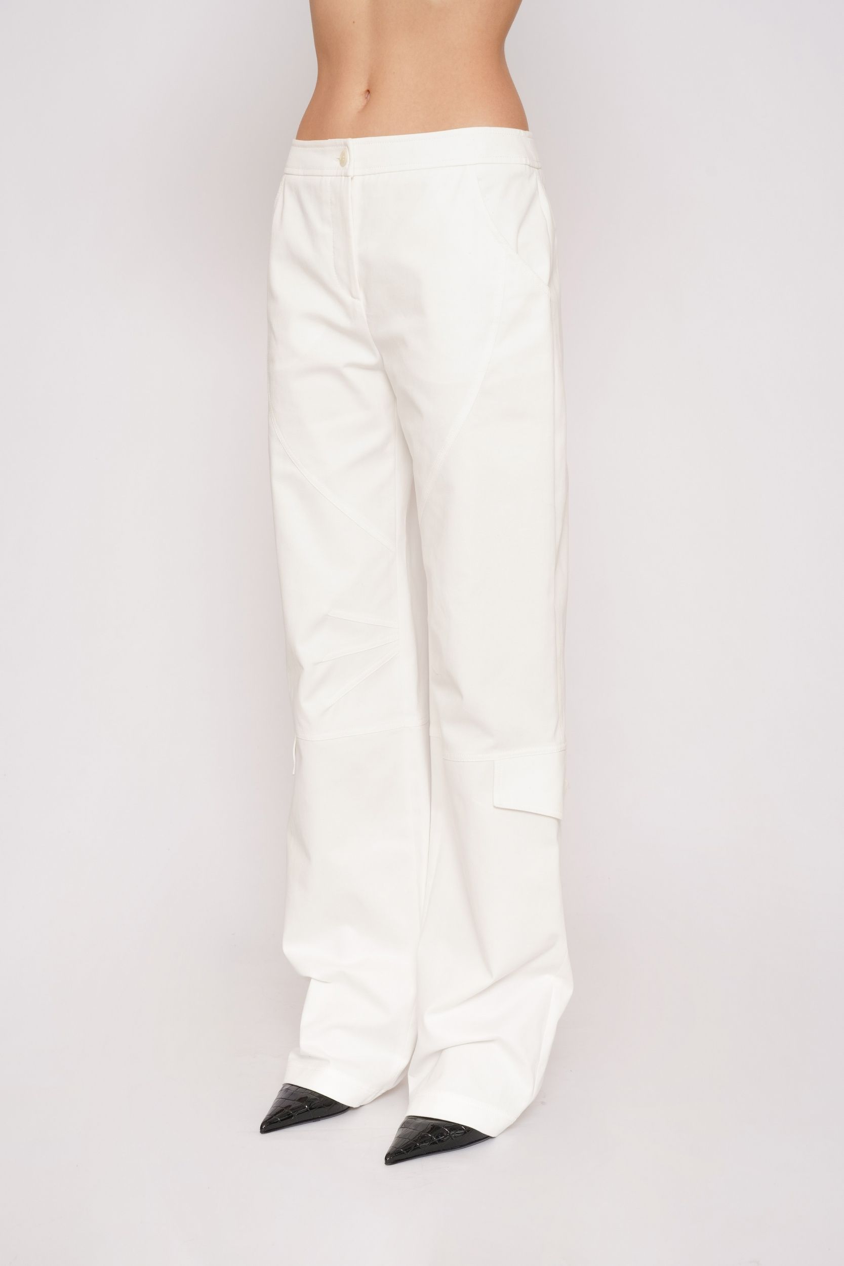 Белые брюки-карго из мягкого хлопка от ALBERTA FERRETTI. Модель свободного кроя с высокой посадкой, поясом, накладными карманами и застежкой на молнию и пуговицу. Брюки идеально впишутся в городской стиль и дополнят повседневные образы.