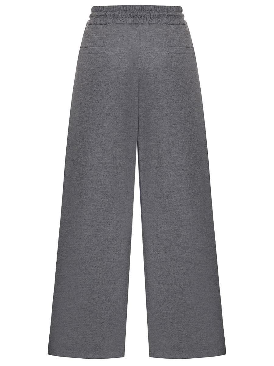 Модель свободного прямого кроя со стандартной посадкой, эластичным поясом на кулиске, прорезными карманами.