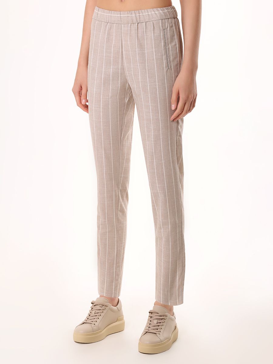 Бежевые в полоску укороченные брюки купажированного состава от PANICALE.
