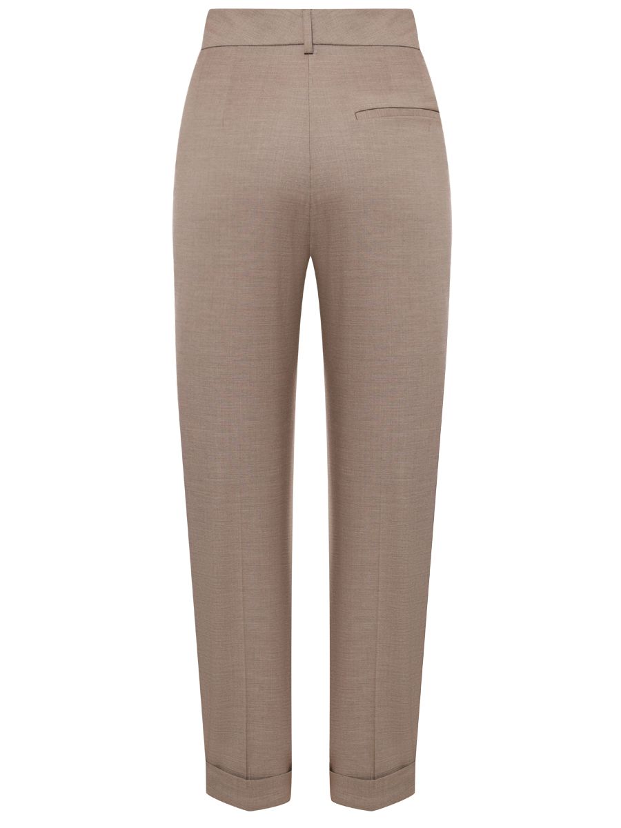 Коричневые укороченные брюки из мягкой шерсти и вискозы от PANICALE.Модель с высокой посадкой, двумя боковыми и задним прорезным карманами, отворотами в нижней части брючин, защипами и графичными стрелками, которые визуально вытягивают силуэт, застежкой спереди.Брюки будут уместно смотреться и на воскресном бранче, и в офисе.