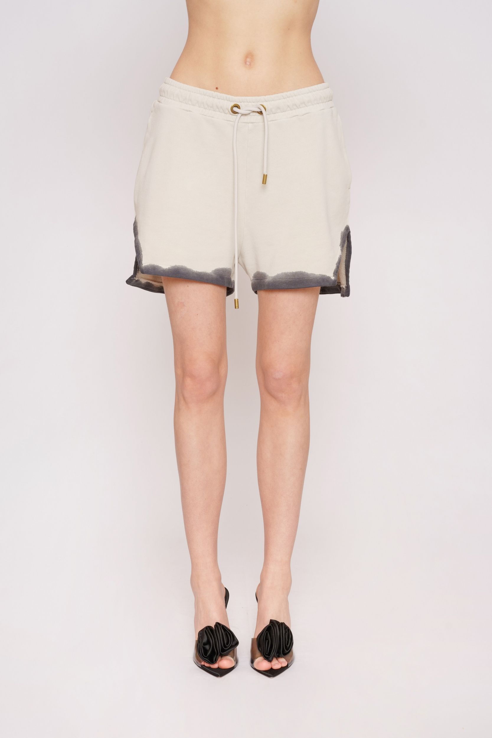 Модель свободного кроя со стандартной посадкой, эластичным поясом на кулиске, прорезными карманами, боковыми разрезами, логотипом бренда.
