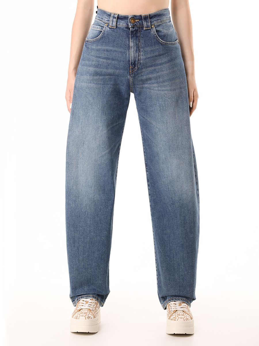 Синие джинсы из хлопка с выбеленным эффектом от PINKO.