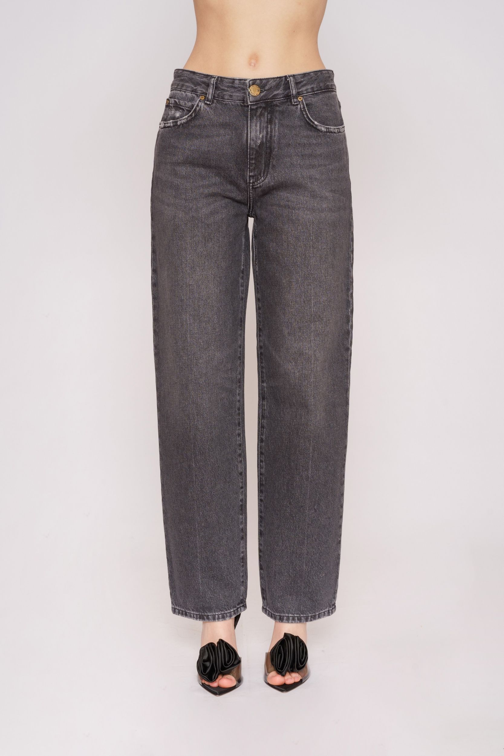 Черные укороченные джинсы из хлопка от PINKO.