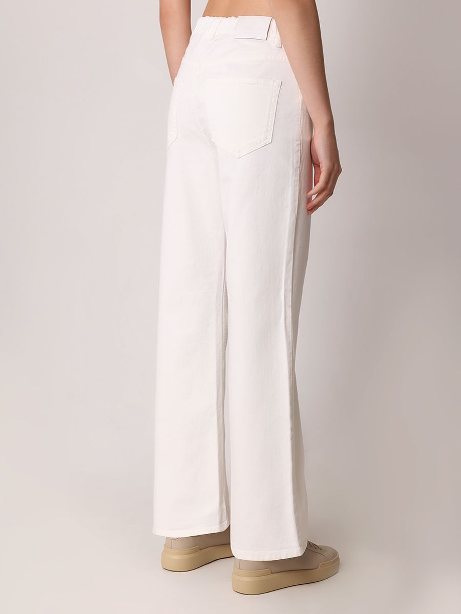 Модель с легким клешем кроя от колена, средней посадкой, поясом со шлевками, прорезными и накладными карманами, застежкой на молнию и пуговицу, нашивкой с логотипом бренда, декором цепочками Мониль.