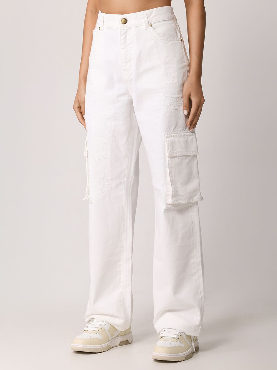 Белые джинсы-карго из хлопкового денима от PINKO.