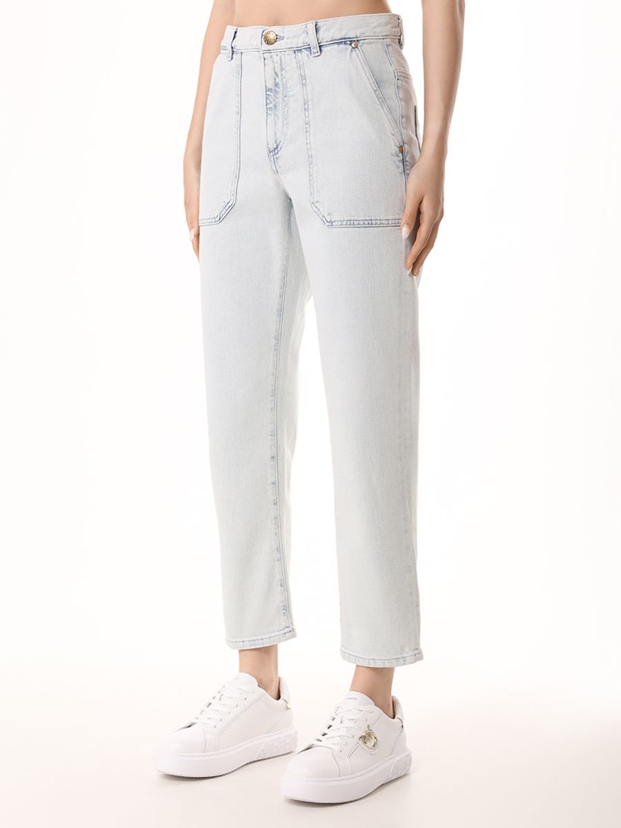 Голубые джинсы из хлопкового денима с выбеленным эффектом от PINKO.