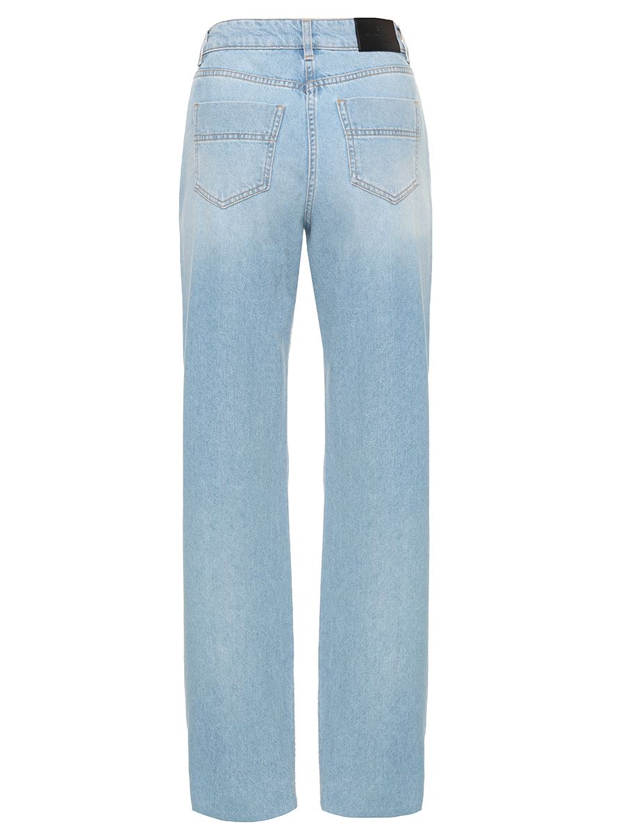 Свободные, слегка расклёшенные книзу брюки из денима. Спереди модель обращает на себя внимание текстурой со сплошной отделкой стразами для придания эксклюзивного блестящего эффекта. Лейбл с логотипом сзади вносит финальный штрих в дизайн этого изделия, навеянного культовыми джинсами с пятью карманами. Классический силуэт.