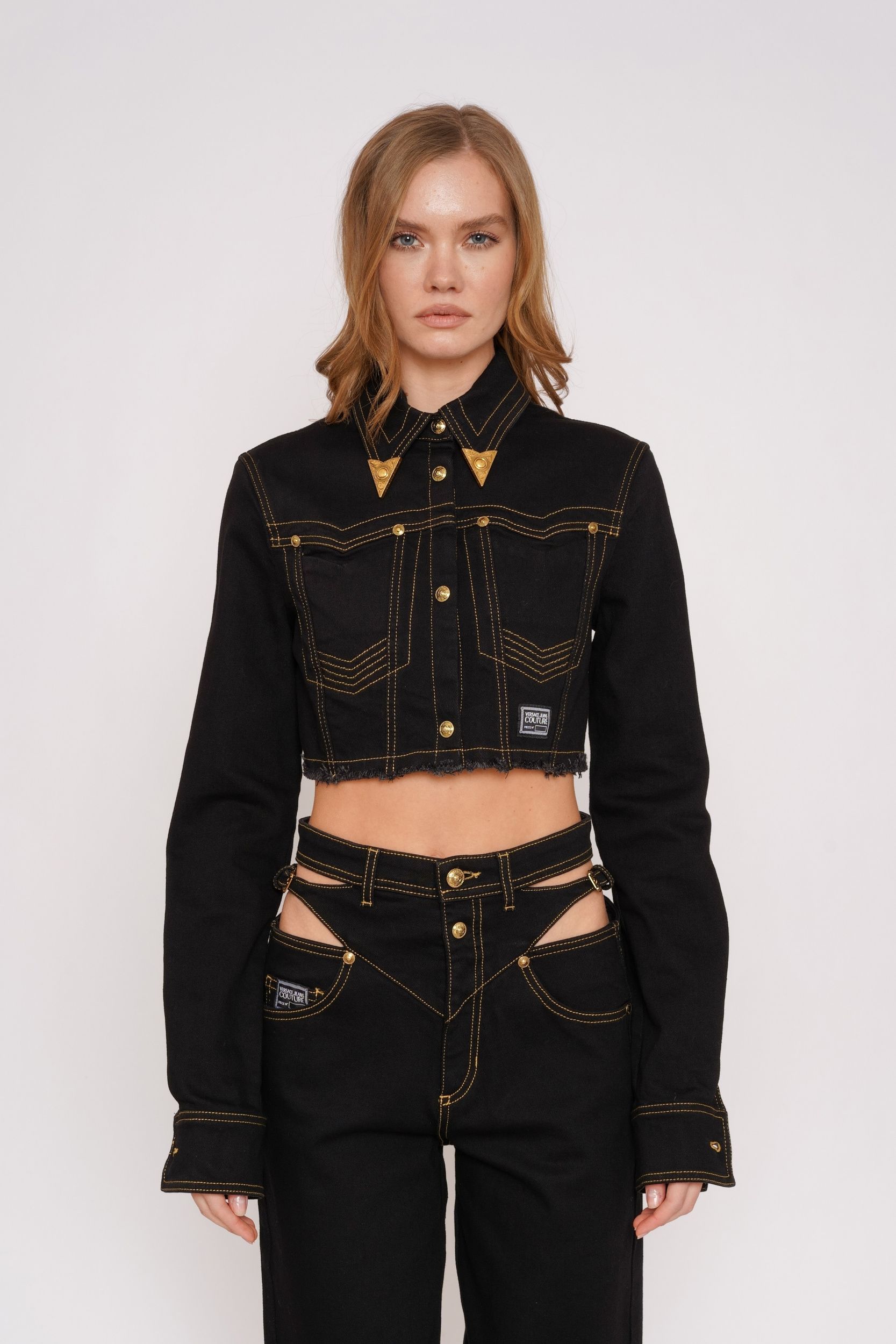 Черная куртка из хлопкового денима от VERSACE JEANS COUTURE.