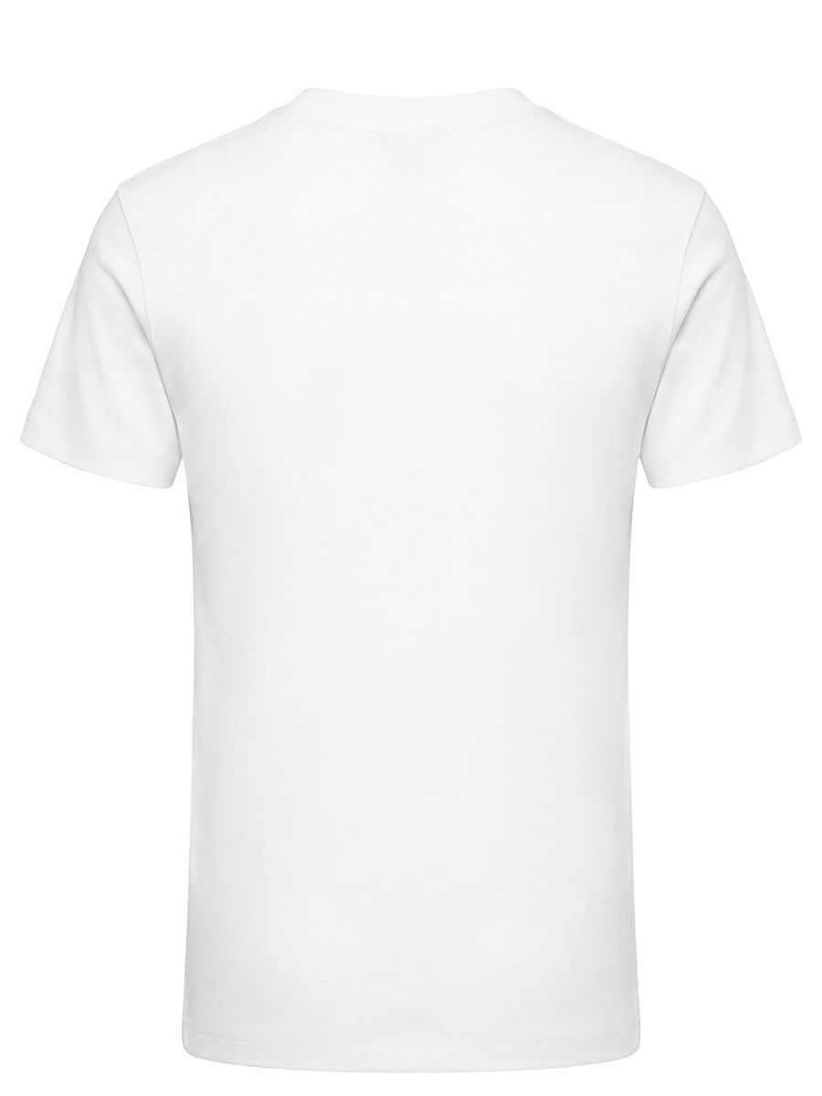 Модель прямого кроя с короткими рукавами, круглым вырезом горловины и принтом с логотипом на груди.