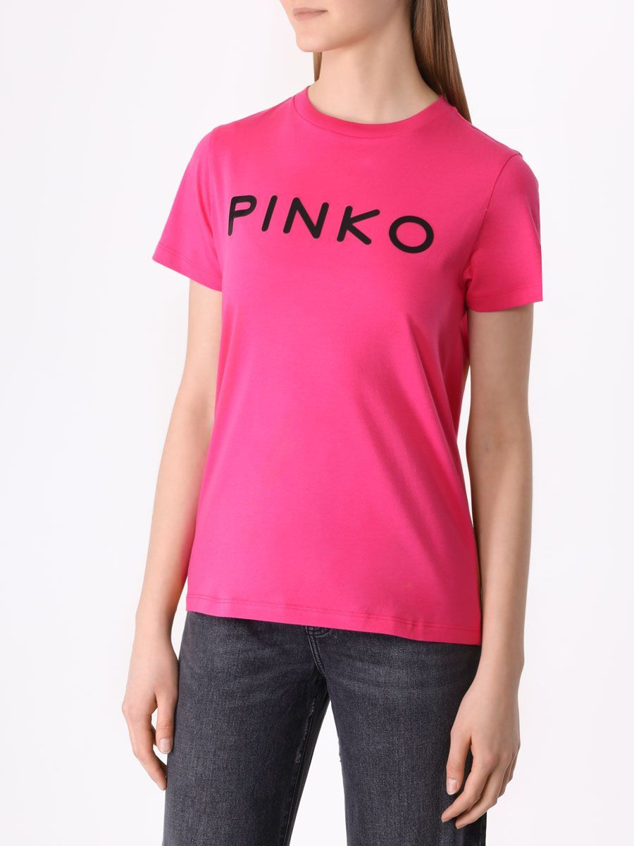 Розовая футболка из мягкого хлопка от PINKO.