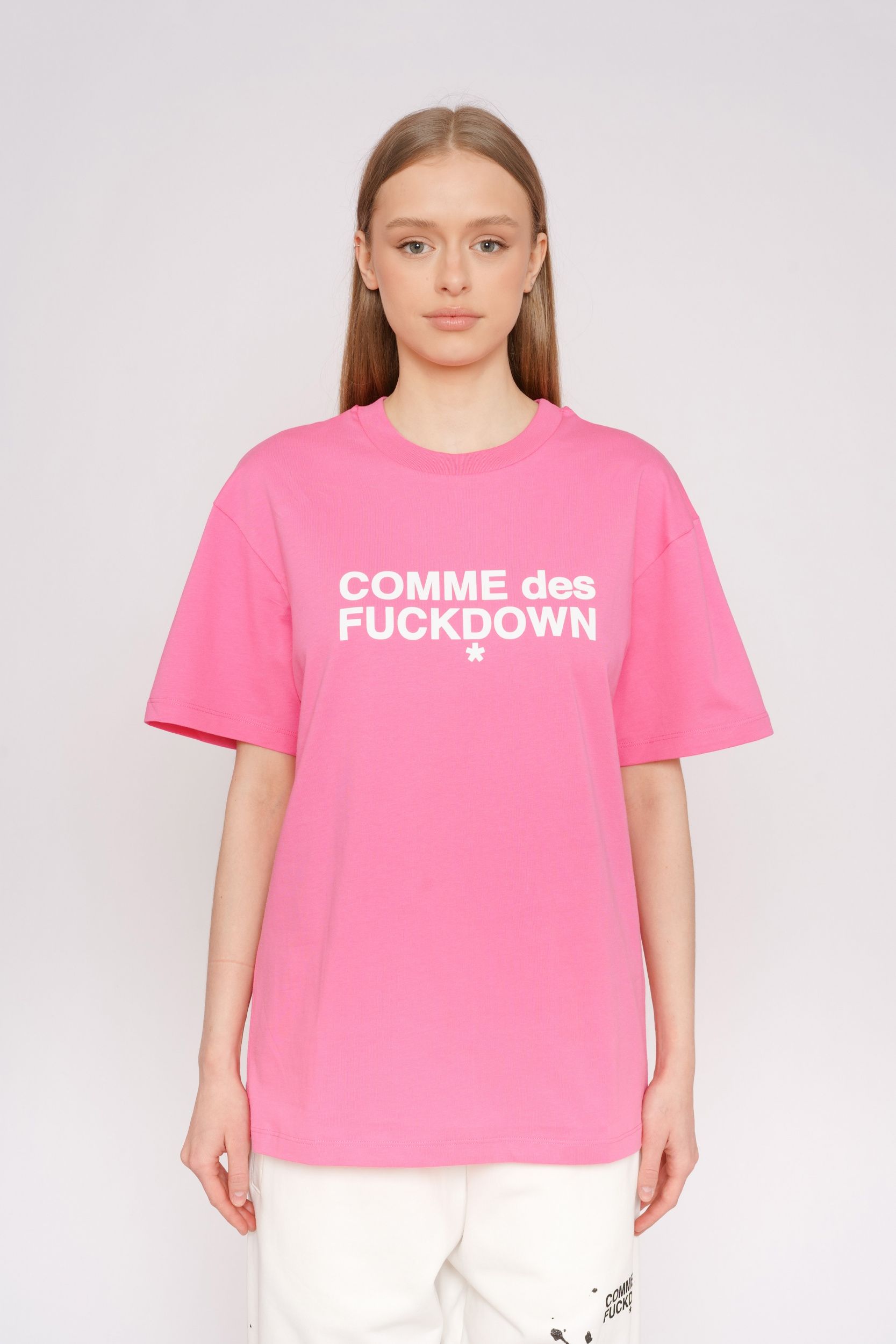 Розовая футболка из мягкого хлопка от COMME DES FUCKDOWN.