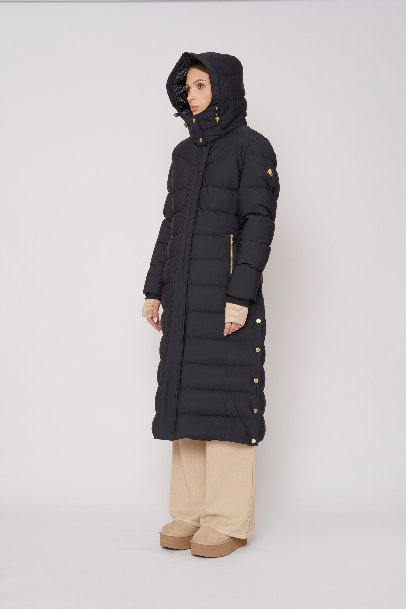 Удлиненный пальто-пуховик от Moose Knuckles с минималистичным дизайном и непревзойденным комфортом. Водоотталкивающая ткань, два кармана с застежкой-молнией, съемный капюшон на кнопках, на рукаве нашивка с золотистым логотипом, боковые швы с застежкой на кнопки. Окунитесь в роскошь с помощью этого невероятно мягкого предмета одежды. Разработано в Канаде.