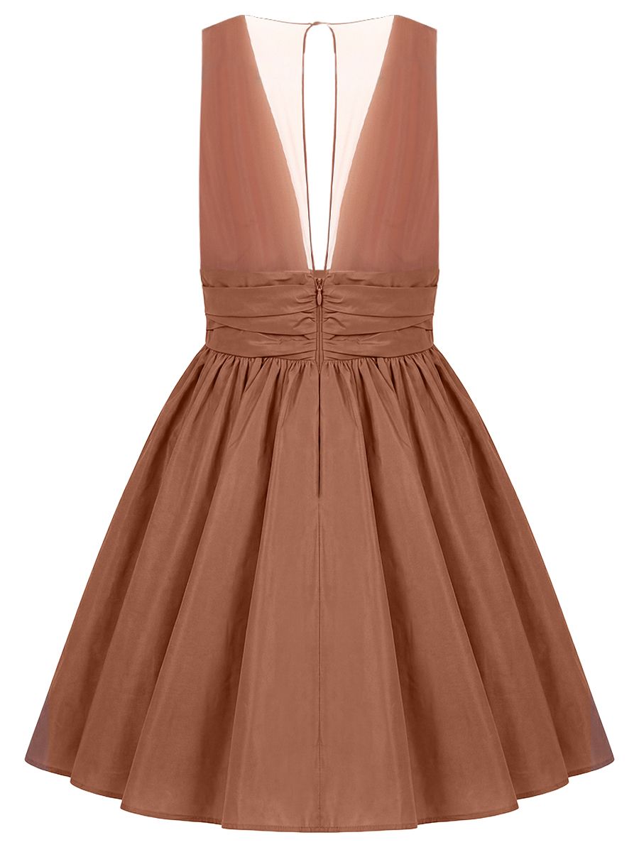 -Светло-коричневое платье из тонкой шелковистой тафты и эластичного полупрозрачного тюля от PINKO.