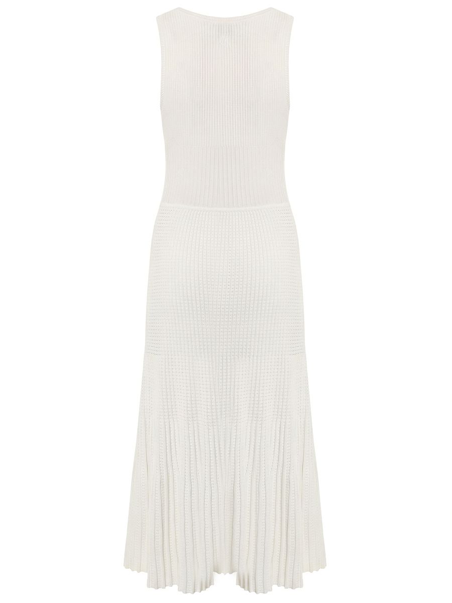 Белое платье из фактурного трикотажа на основе смесовой вискозы от PINKO.