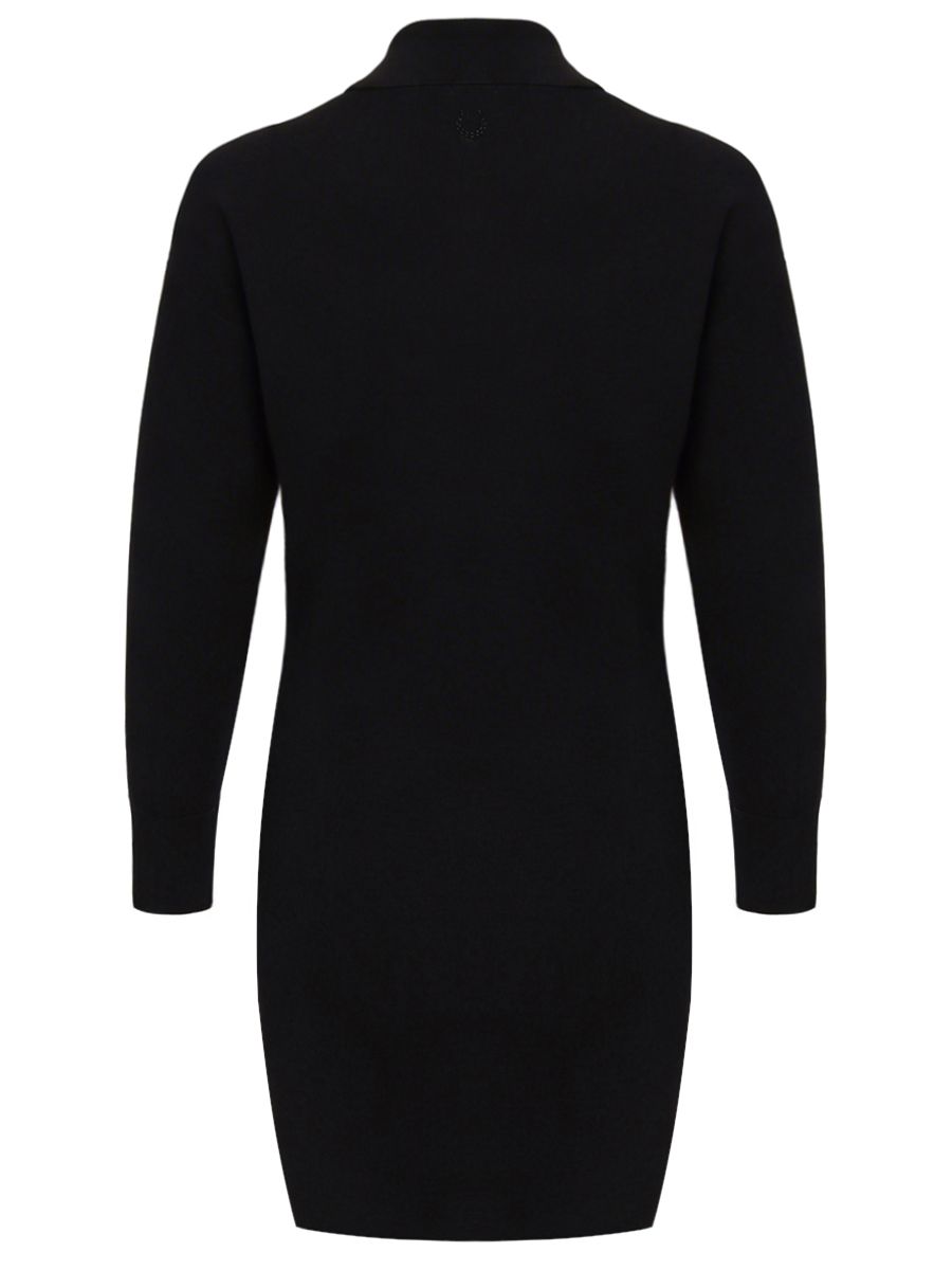 Черное платье-мини из смесовой вискозы от PINKO.-Модель полуприлегающего силуэта с длинными рукавами, отложным воротником и застежкой на молнию с брендированным пуллером на груди.-Нежный трикотаж из вискозы хорошо пропускает воздух, не раздражает кожу и придает изделию приятный шелковистый эффект.