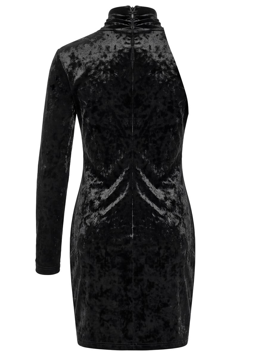 -Модель полуприлегающего кроя с асимметричной драпировкой, создающей скульптурный эффект, одним рукавом и застежкой на потайную молнию на спине.