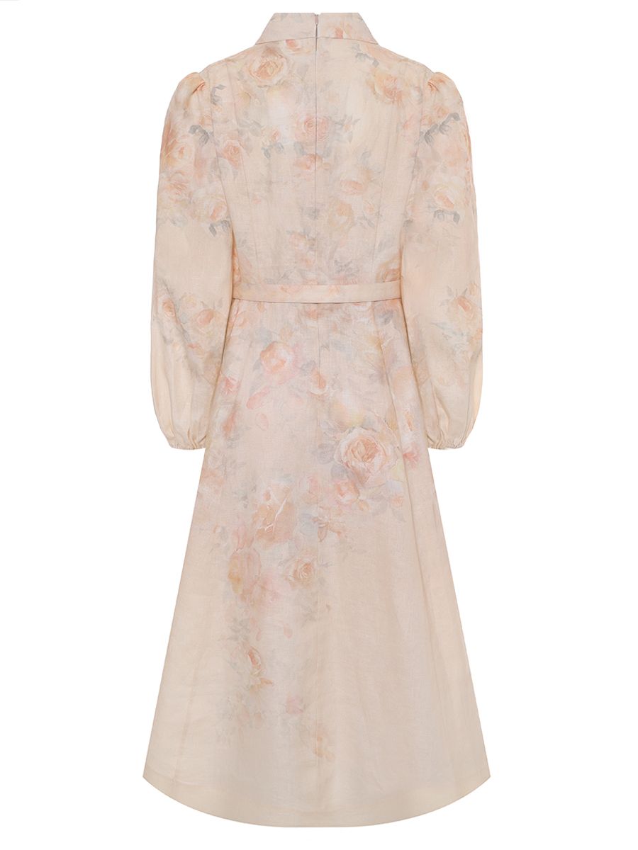 Бежевое платье-миди из легкого дышащего льна от ZIMMERMANN.