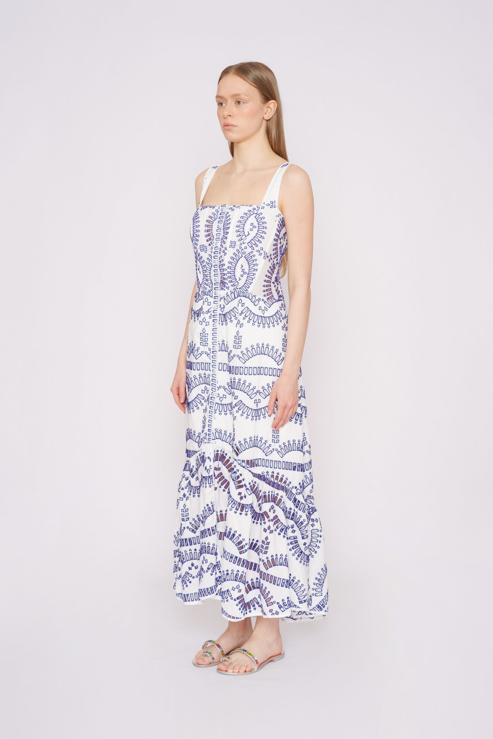 Белый миди-сарафан купажированного состава с шитьем от CHARO RUIZ.