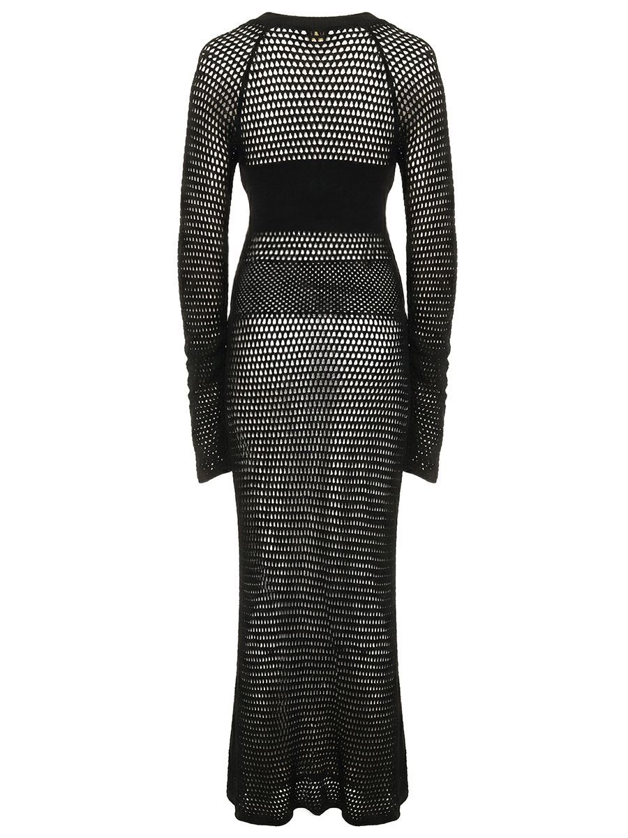 Черное платье ажурной вязки из смесовой вискозы от PINKO.