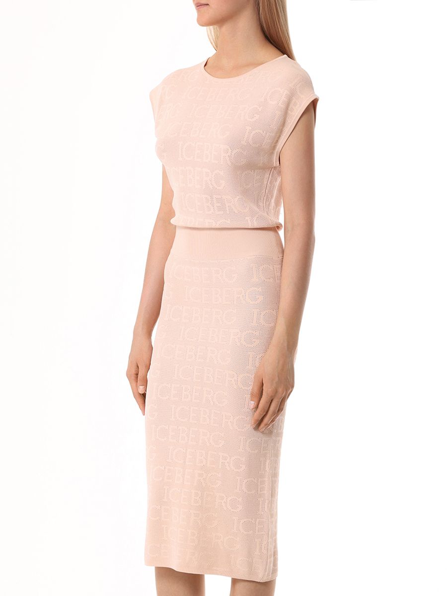 Бежевое платье с паттерном логотипа бренда из смесовой вискозы от ICEBERG.