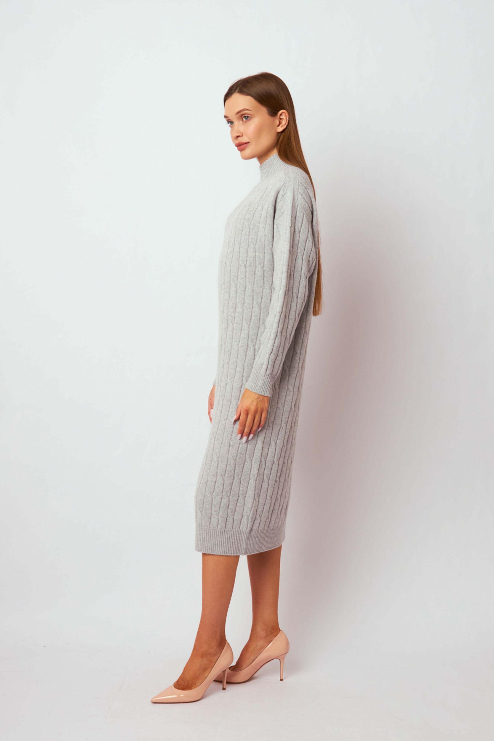 Серое платье фактурной вязки из мягкой шерсти с добавлением кашемира от CAPPELLINI.