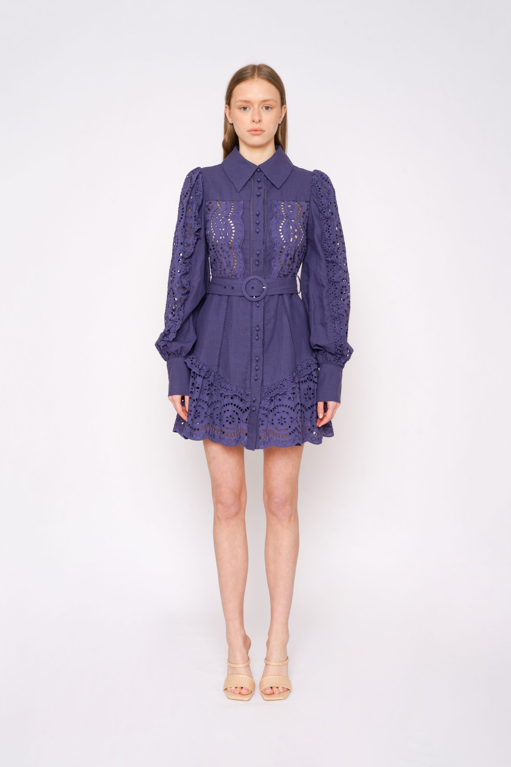 Синее мини-платье из рами с шитьем от SAINT ARMONT.