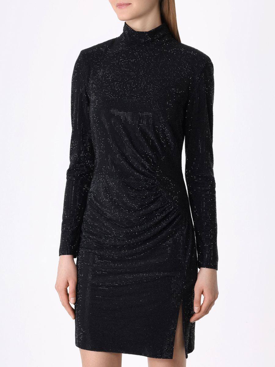 Черное мини-платье из эластичного джерси, украшенного мерцающими стразами, от MAISON D'ANGELANN.