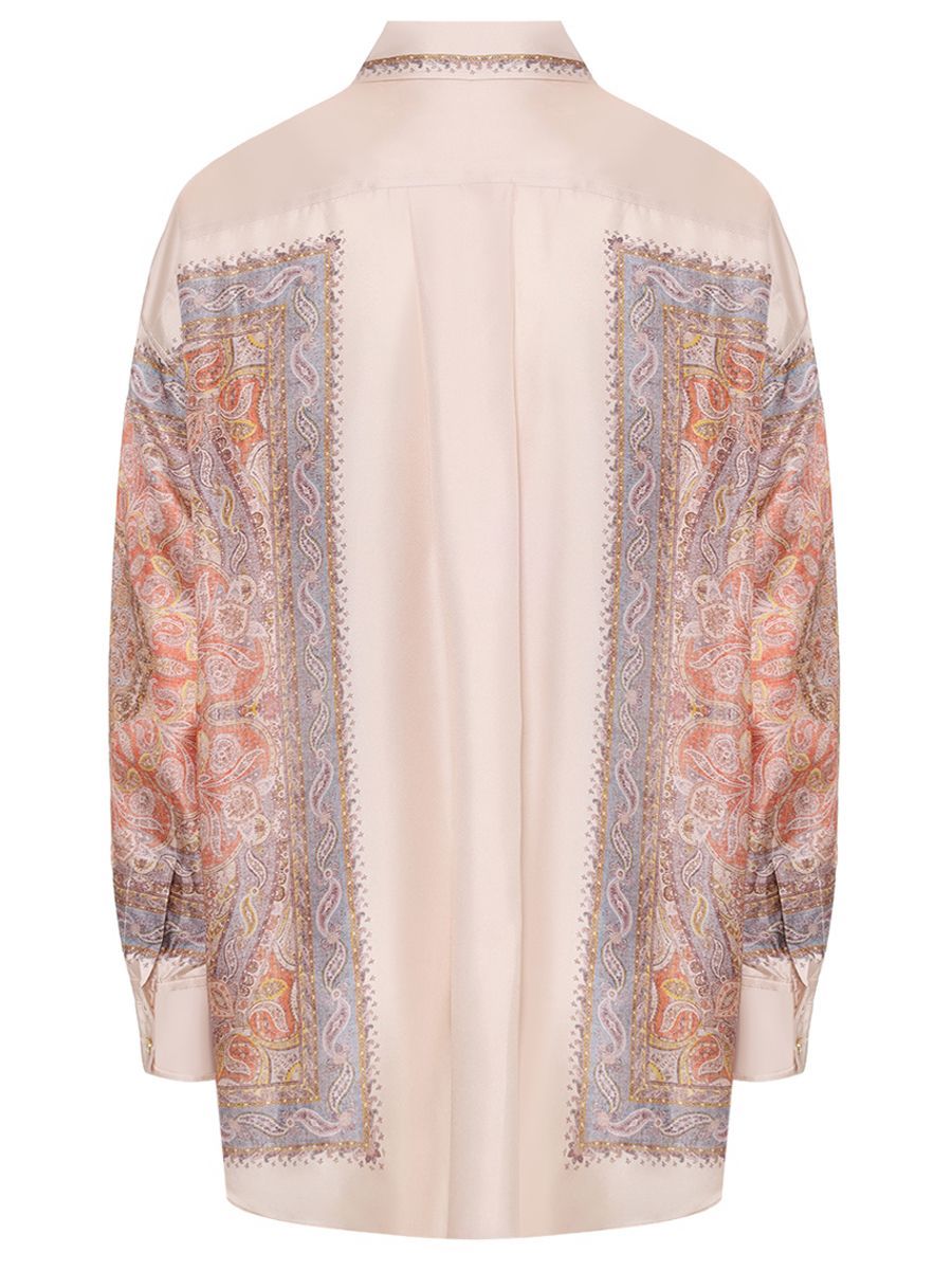 Бежевая блуза с принтом пейсли из струящегося шелка от ZIMMERMANN.