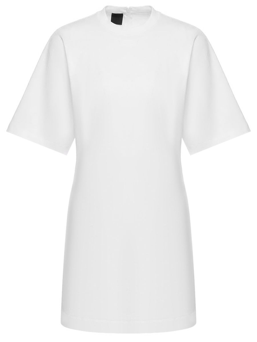 Модель прямого кроя с короткими рукавами, круглым вырезом горловины и застежкой на потайную молнию на спине.