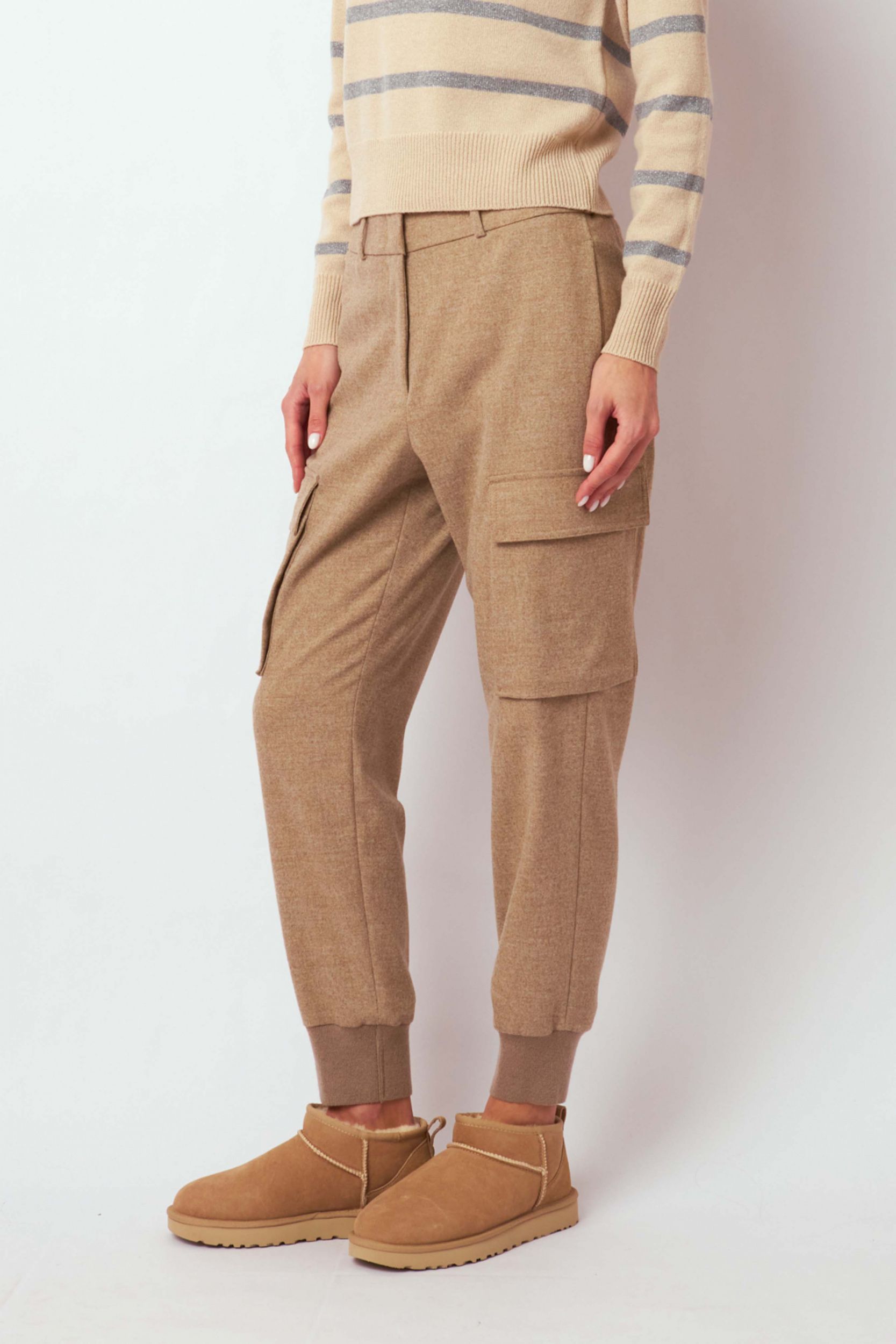 Бежевые брюки-карго купажированного состава от CAPPELLINI.