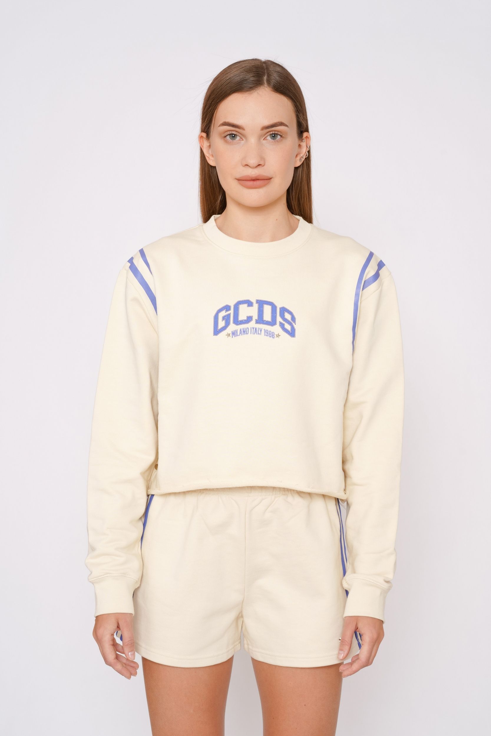 Бежевая укороченная толстовка из мягкого хлопка от GCDS.